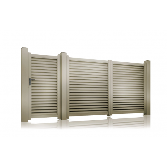 Iti prezentam una dintre modelele de porti din aluminiu, care face parte din categoria portilor tip jaluzea. Portile metalice tip jaluzea sunt foarte ingenioase, deoarece panourile lor sunt alcatuite din lamele reglabile. Prin distantarea sau apropierea acestor lamele, poti regla cantitatea de aer care sa patrunda in curtea ta, fara sa pui presiune pe panouri.